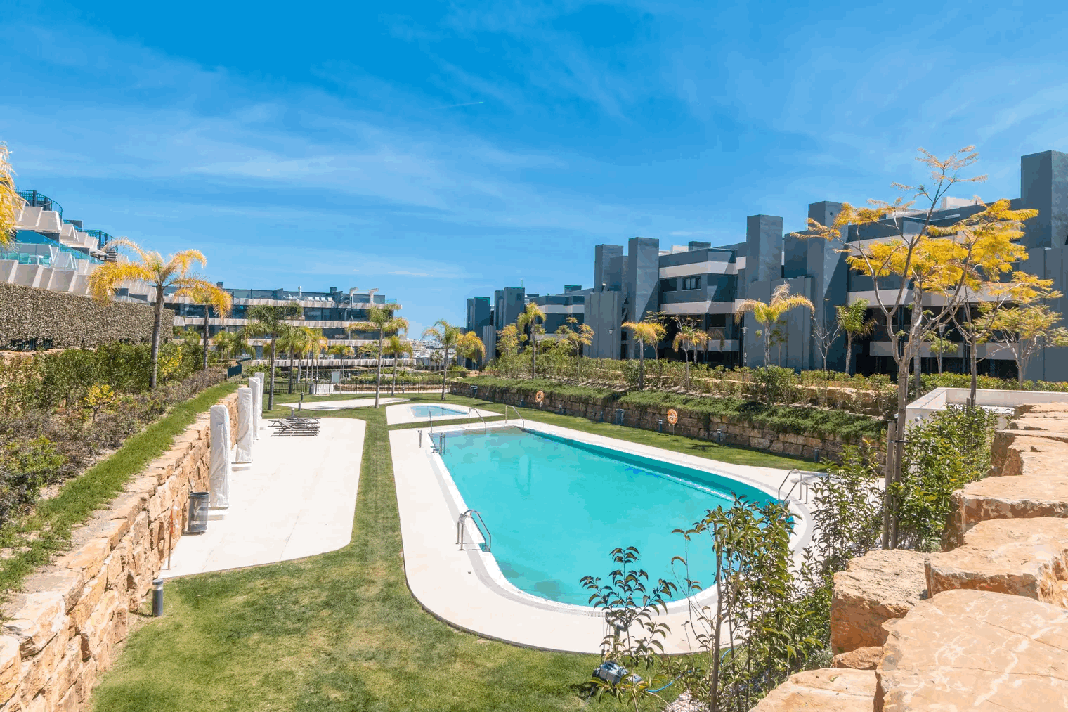 The development stands out for its comprehensive facilities: outdoor and indoor heated swimming pools, state-of-the-art gym, sauna, coworking space, and meticulously maintained gardens. A privileged environment that combines tranquility, comfort, and lifestyle.