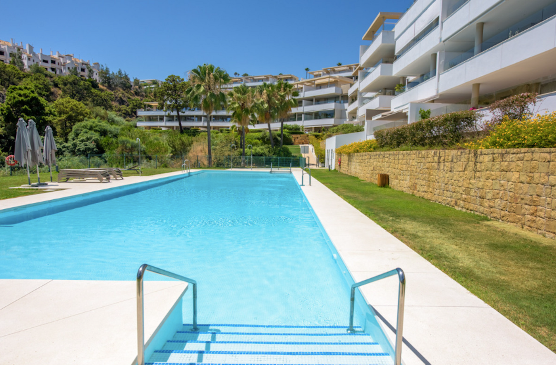 Built in 2018, the apartment offers three spacious bedrooms, including a master suite with direct terrace access and a luxurious en-suit bathroom. Both bathrooms are fitted with underfloor heating, adding a touch of everyday indulgence.