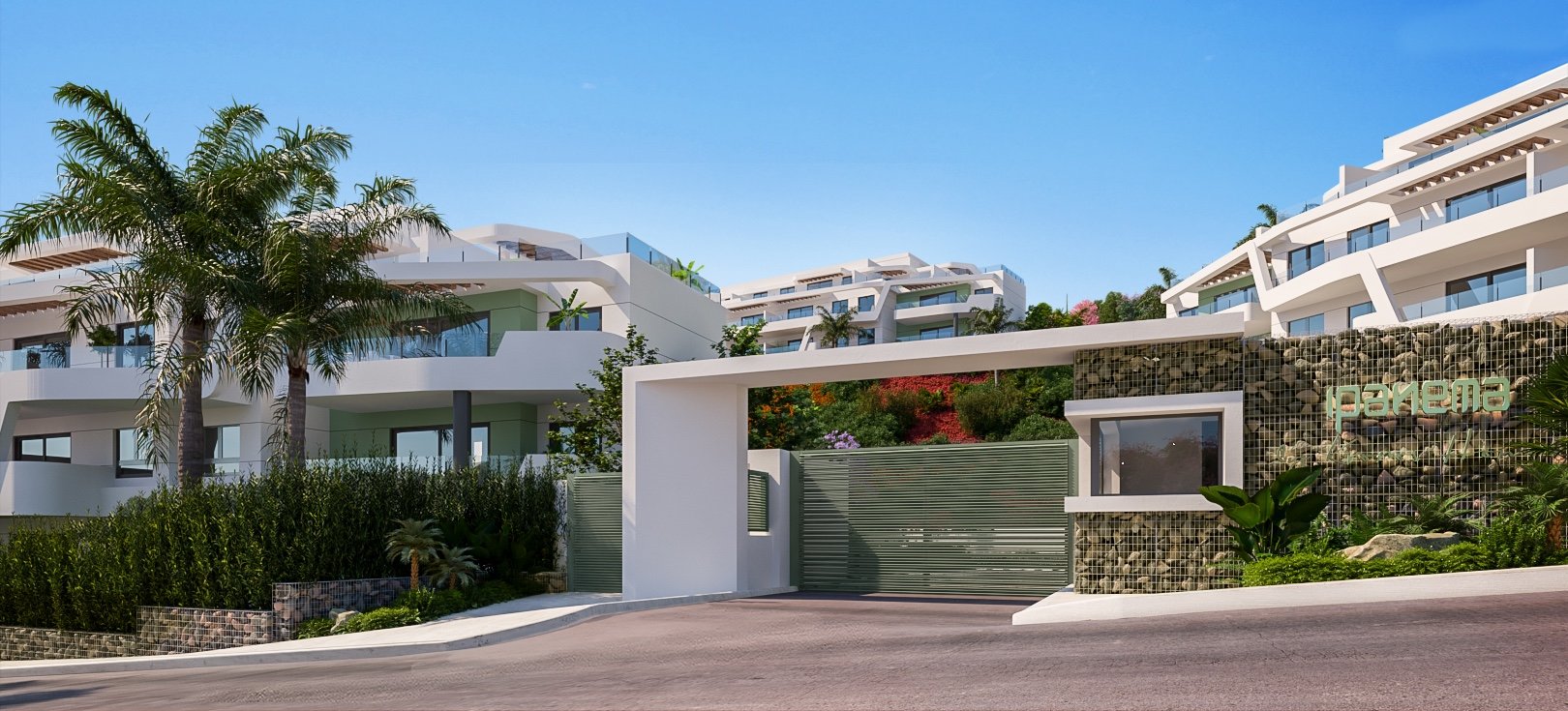 A brand new development located in a privileged setting, with panoramic sea and mountain views, orientated for optimal natural light and sunshine. The 146 two and three- bedroom apartments in this gated community range from garden and first floor properties to large penthouses with wrap-around terraces.