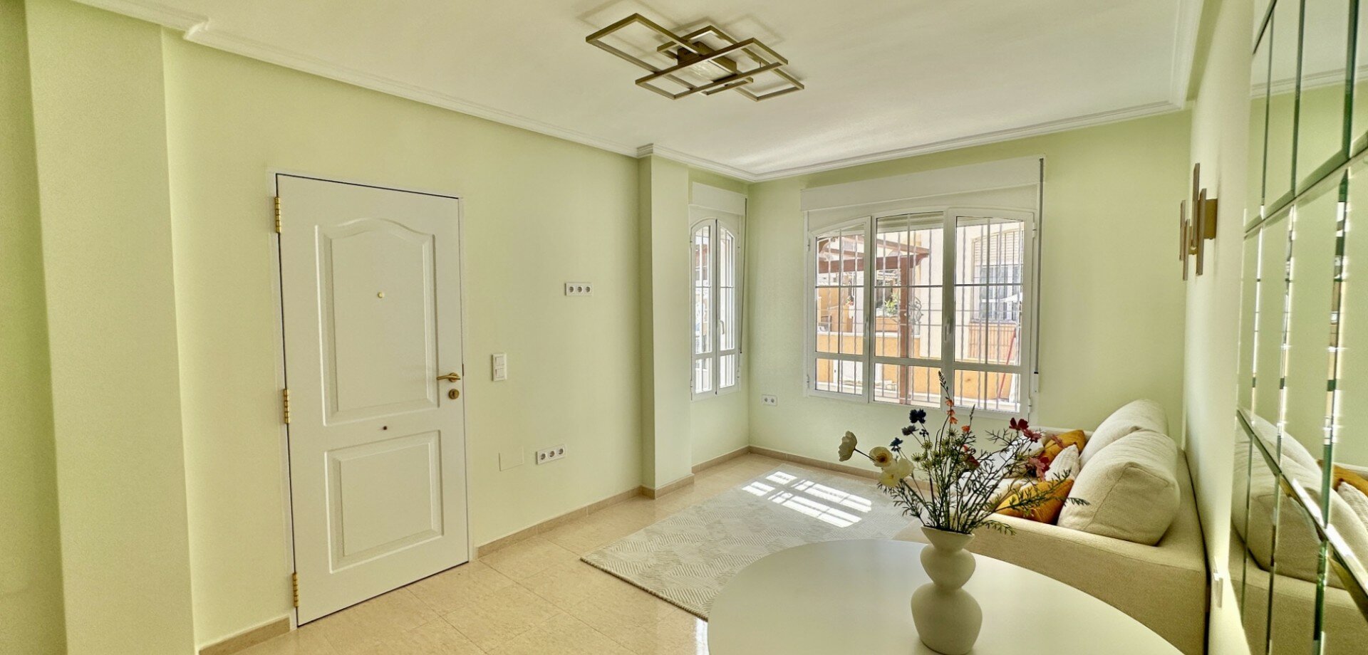 Descubre este adosado recién reformado en la codiciada zona de Cabo Roig, Orihuela Costa. Con 80 m² construidos y un jardín privado de 60 m², la vivienda ofrece 3 dormitorios con armarios empotrados, 2 baños modernos, terraza, solárium y un luminoso salón con aire acondicionado.Se entrega parcialmente amueblado con electrodomésticos, además cuenta con aparcamiento privado, trastero y acceso a una atractiva piscina comunitaria.Una propiedad elegante y lista para entrar a vivir, cerca de playas, tiendas y restaurantes, ideal como residencia o inversión.