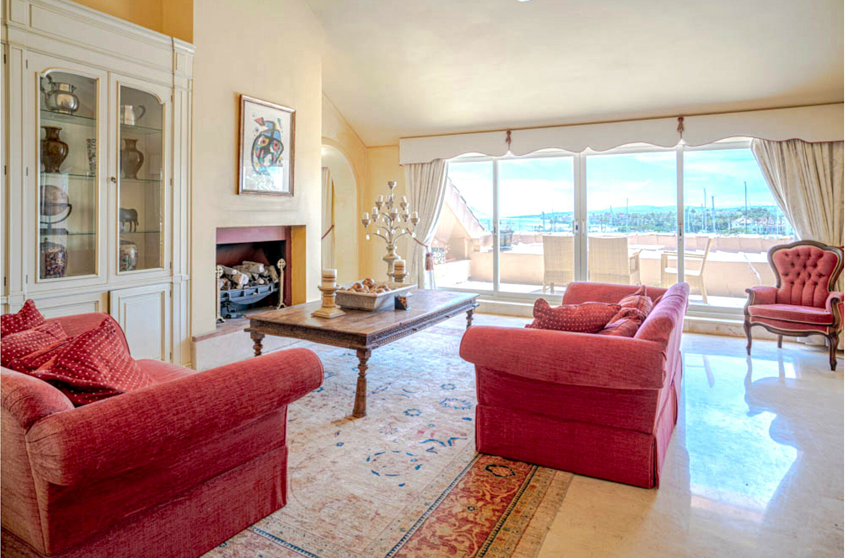 El ático cuenta con tres amplios salones, cada uno adornado con una acogedora chimenea, creando un ambiente acogedor. Con cuatro dormitorios, cada uno con baño privado y múltiples terrazas para disfrutar de una deliciosa cena al aire libre mientras disfruta de las vistas panorámicas. La cocina se ha actualizado con los más altos estándares, lo que garantiza la excelencia culinaria y el interior está recién pintado, lo que irradia una renovada sensación de elegancia.