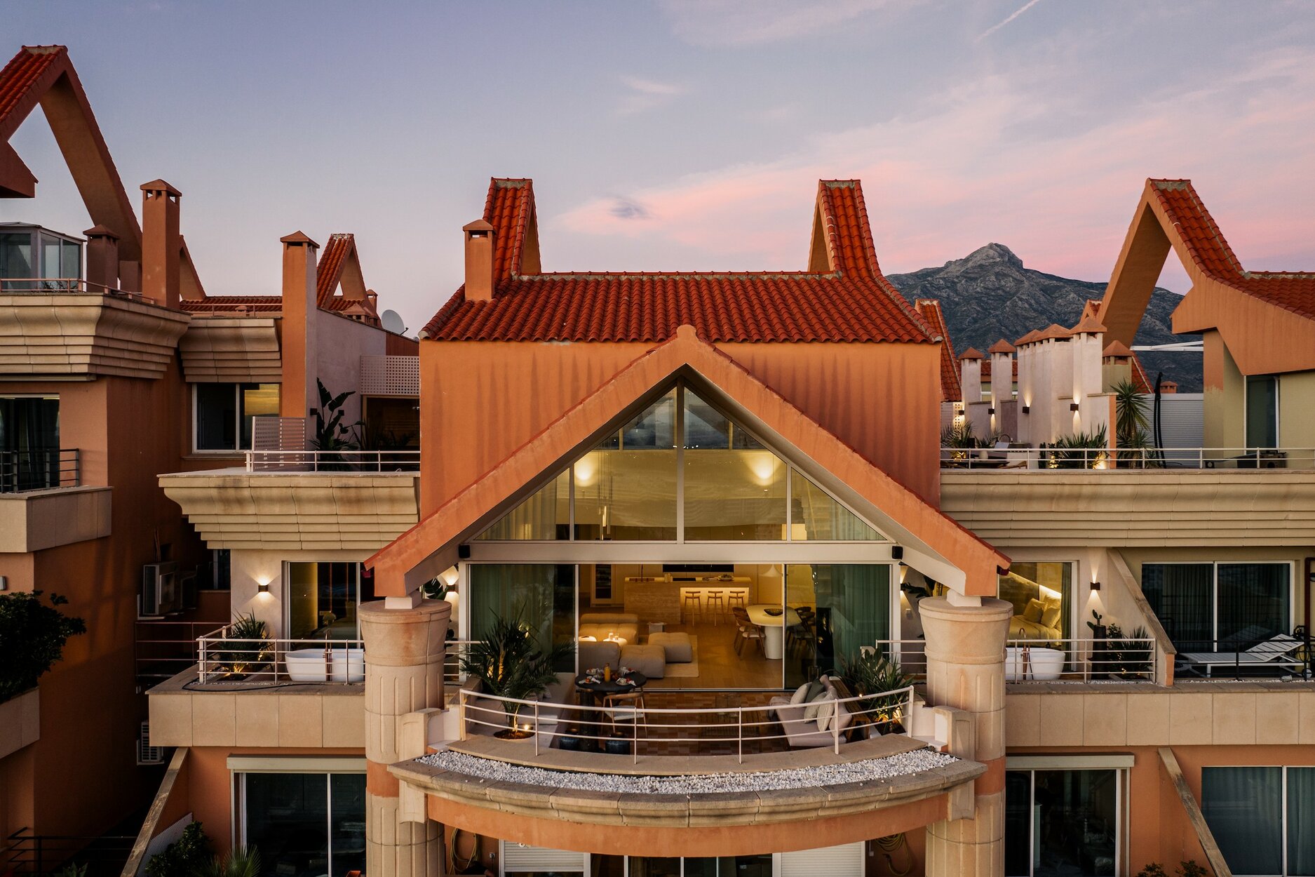 Convenientemente cerca de Puerto Banús y de las aguas azules de el Mediterráneo, este ático contemporáneo y minimalista. Es elevado pero accesible.