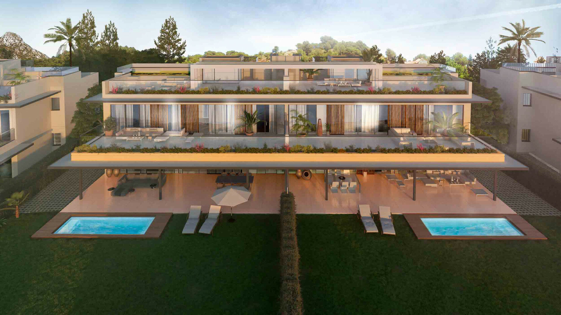 Ubicado en la zona este de Marbella, a solo minutos de la entrada de la ciudad, este exquisito ático dúplex de tres dormitorios ofrece un estilo de vida inigualable en una exclusiva comunidad cerrada en primera línea de golf. Con un diseño contemporáneo y acabados de alta calidad, la vivienda dispone de amplias zonas de estar y comedor de concepto abierto, con grandes ventanales que inundan los interiores de luz natural y se conectan perfectamente con extensas terrazas que ofrecen impresionantes vistas panorámicas al campo de golf y sus alrededores. La cocina moderna está equipada con electrodomésticos de primeras marcas, encimeras de cuarzo e iluminación LED integrada, mientras que los elegantes baños presentan azulejos porcelánicos de gran formato. Los residentes pueden disfrutar de dos grandes piscinas con solárium, zonas ajardinadas bajo majestuosos pinos centenarios y exclusivas instalaciones deportivas y de relax. Perfectamente orientado para aprovechar la luz solar y la tranquilidad, con fácil acceso a Marbella, Puerto Banús, campos de golf cercanos, playas, restaurantes y a los aeropuertos de Málaga y Gibraltar, este ático combina sofisticación, confort y lo mejor del estilo de vida de la Costa del Sol.