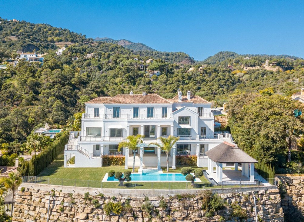 Una obra maestra situada dentro de las puertas seguras y las partes altas de El Madroñal, Benahavis, ubicada en una zona tranquila que ofrece excelentes vistas al mar desde todos los pisos.
