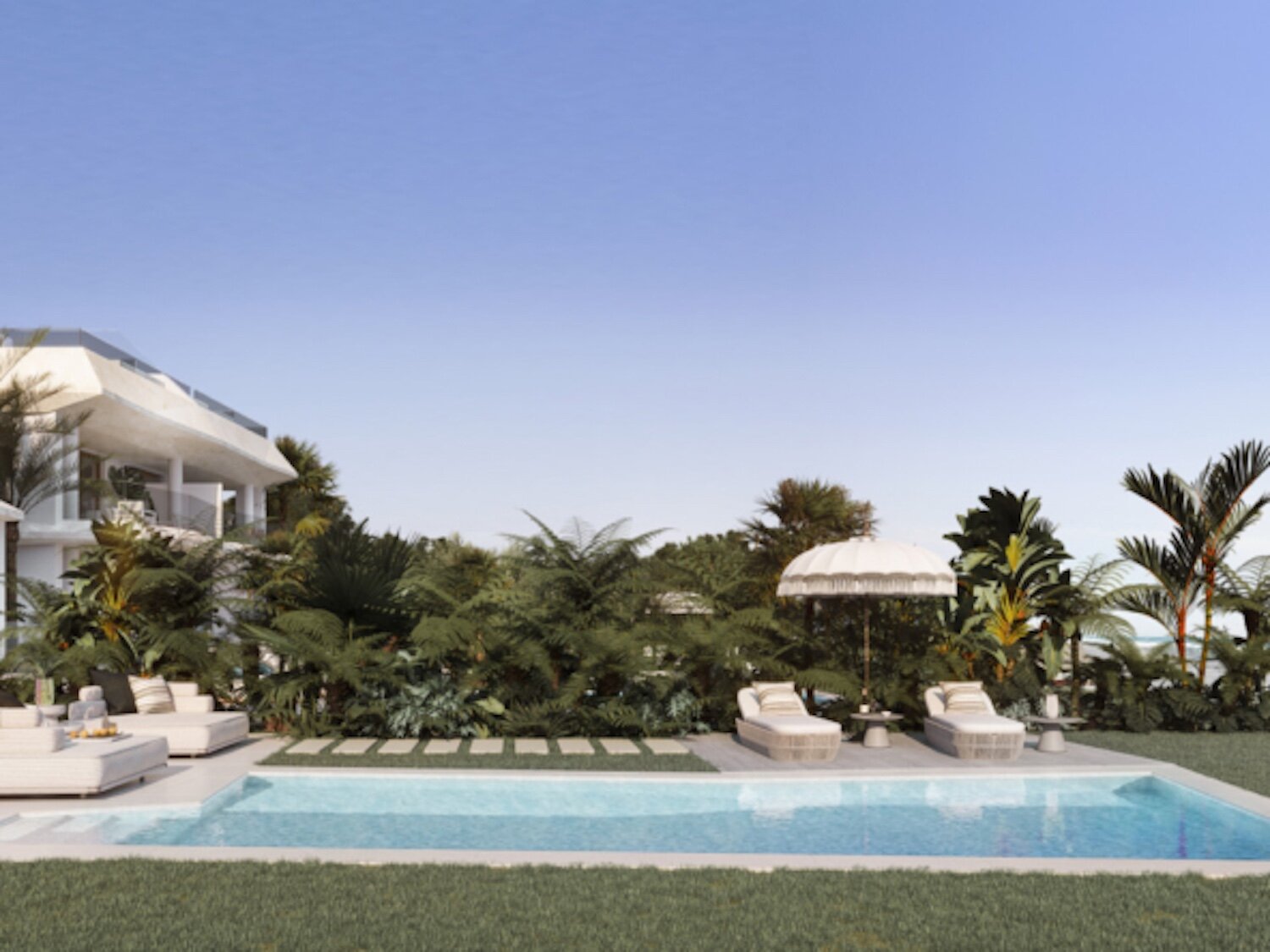 Cada propiedad cuenta con una parcela privada de aproximadamente 500 m2 y consta de 4 dormitorios, 4 baños y un aseo de invitados. La zona exterior se extiende desde el porche cubierto hasta la piscina y concluye con un arenal privado donde podrá disfrutar de su propia playa junto al mar.