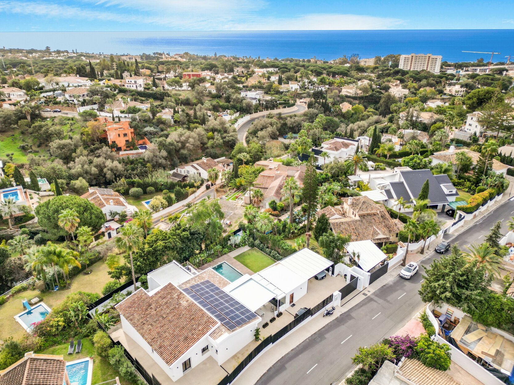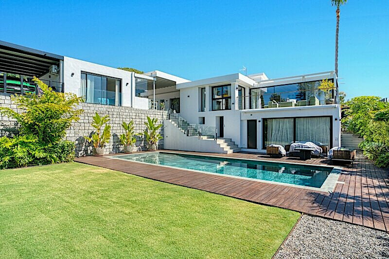 Villa de cinco dormitorios y orientación suroeste, totalmente renovada, ubicada en una de las zonas residenciales más exclusivas de Marbella Este. Rodeada de exuberantes jardines y un entorno tranquilo, esta propiedad ofrece la combinación perfecta de elegancia, confort y privacidad. La casa principal cuenta con tres dormitorios y tres baños; uno de los dormitorios se ha adaptado como gimnasio y la suite principal incluye una terraza privada. El salón-comedor de planta abierta se integra a la perfección con la cocina. En el exterior, la propiedad ofrece piscina, varias terrazas con cocina exterior cubierta, jardines paisajísticos y una cochera cubierta. También hay dos apartamentos de invitados con entradas privadas y una casa de invitados de nueva construcción. Las terrazas se distribuyen en dos niveles, uno de los cuales incluye una zona chill-out con hermosas vistas al mar, al jardín y a la piscina. Otras características incluyen calefacción por suelo radiante, lavadero y zona de lavandería.