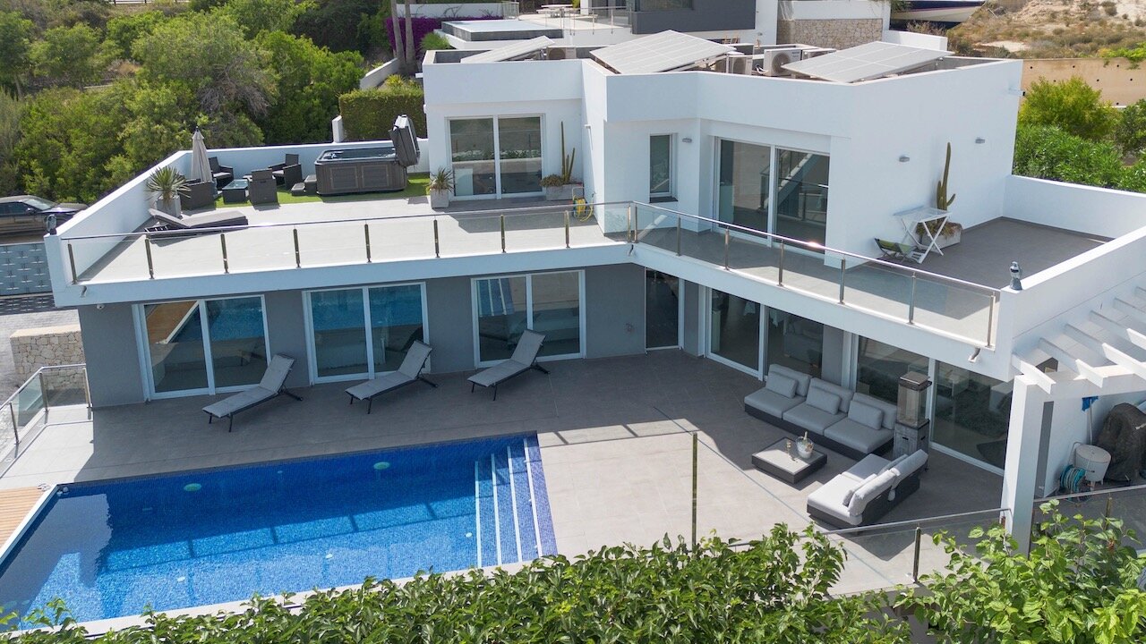 Villa moderna de 5 dormitorios y 3 bañosParcela de 816 m² y 430 m² construidosCocina abierta con isla central integrada en el salónPiscina privada y terrazas soleadasJacuzzi en la terraza de la suite principalÁrea de entretenimiento/bar y posibilidad de gimnasioGaraje espacioso y almacenamiento adicionalA poca distancia del centro de Moraira, restaurantes y playas