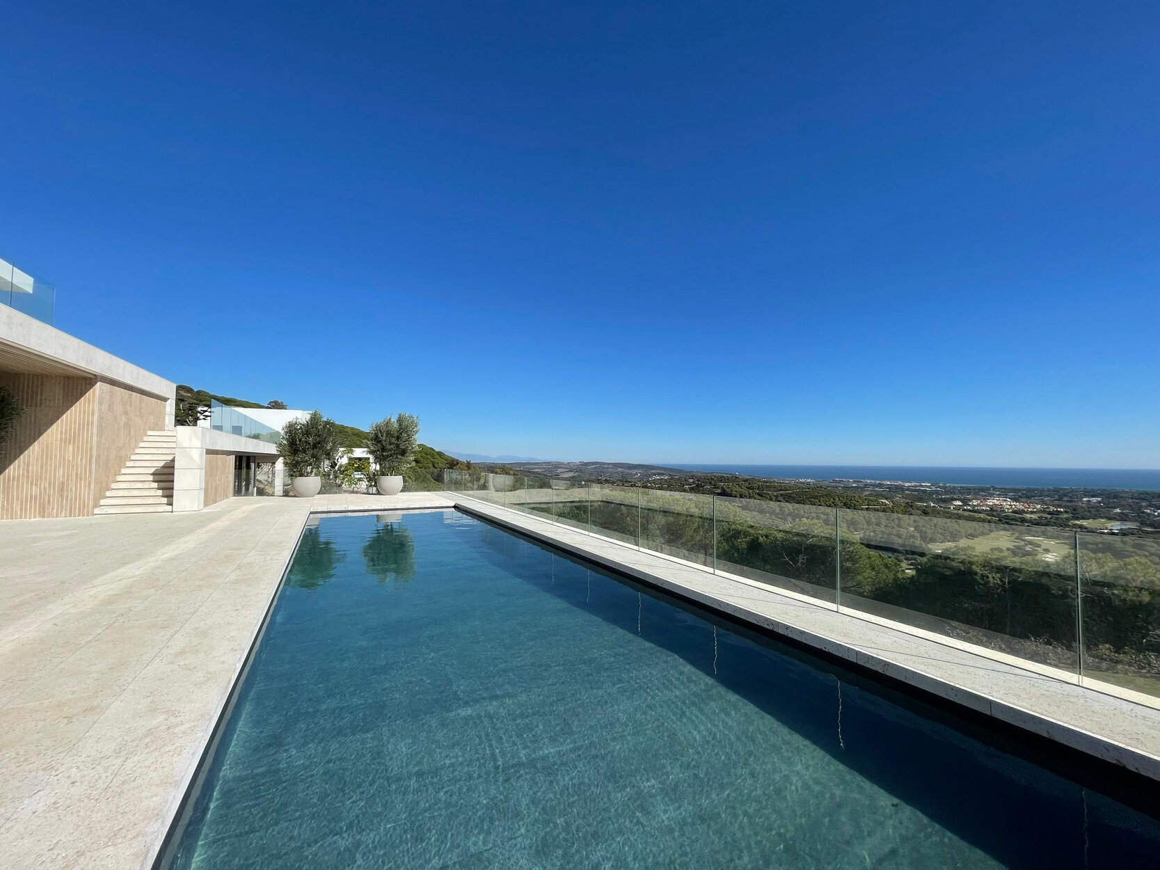 Villa moderna de nueva construcción en un paisaje majestuoso en Sotogrande, con hermosas vistas abiertas al mar, la montaña y la costa. Terminado y amueblado en diciembre de 2021.