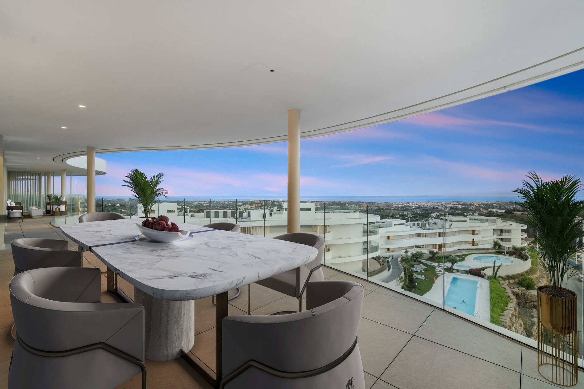Apartamento de lujo de tres dormitorios ubicado en una comunidad exclusiva. Esta comunidad cerrada galardonada está ubicada en una posición elevada sobre el famoso Valle del Golf de Marbella, en las colinas de Benahavís con increíbles vistas panorámicas que se extienden hasta el mar Mediterráneo y más allá; y está a sólo diez minutos en coche de San Pedro y quince minutos de Puerto Banús. Hay una gama completa de comodidades disponibles para los propietarios que incluyen seguridad las 24 horas, servicio de conserjería, club de salud con spa completo, gimnasio, piscinas cubiertas y al aire libre, exuberantes jardines y más. Una propiedad diseñada para optimizar la luz natural con materiales y accesorios de la más alta calidad. Al ingresar a la propiedad, tiene una amplia sala de estar y comedor de planta abierta; cocina abierta totalmente equipada con electrodomésticos de alta gama; dos master suites con acceso a la terraza; una suite de invitados; aseo de invitados; cuarto de lavado; y un espacio multiusos que podría utilizarse como oficina en casa. Todas las habitaciones dan acceso a la gran terraza que ofrece vistas panorámicas. Otras características incluyen aire acondicionado frío y caliente, calefacción por suelo radiante, dos plazas de aparcamiento privadas y dos trasteros. Una propiedad increíble perfecta para vivir todo el año o como casa de vacaciones.