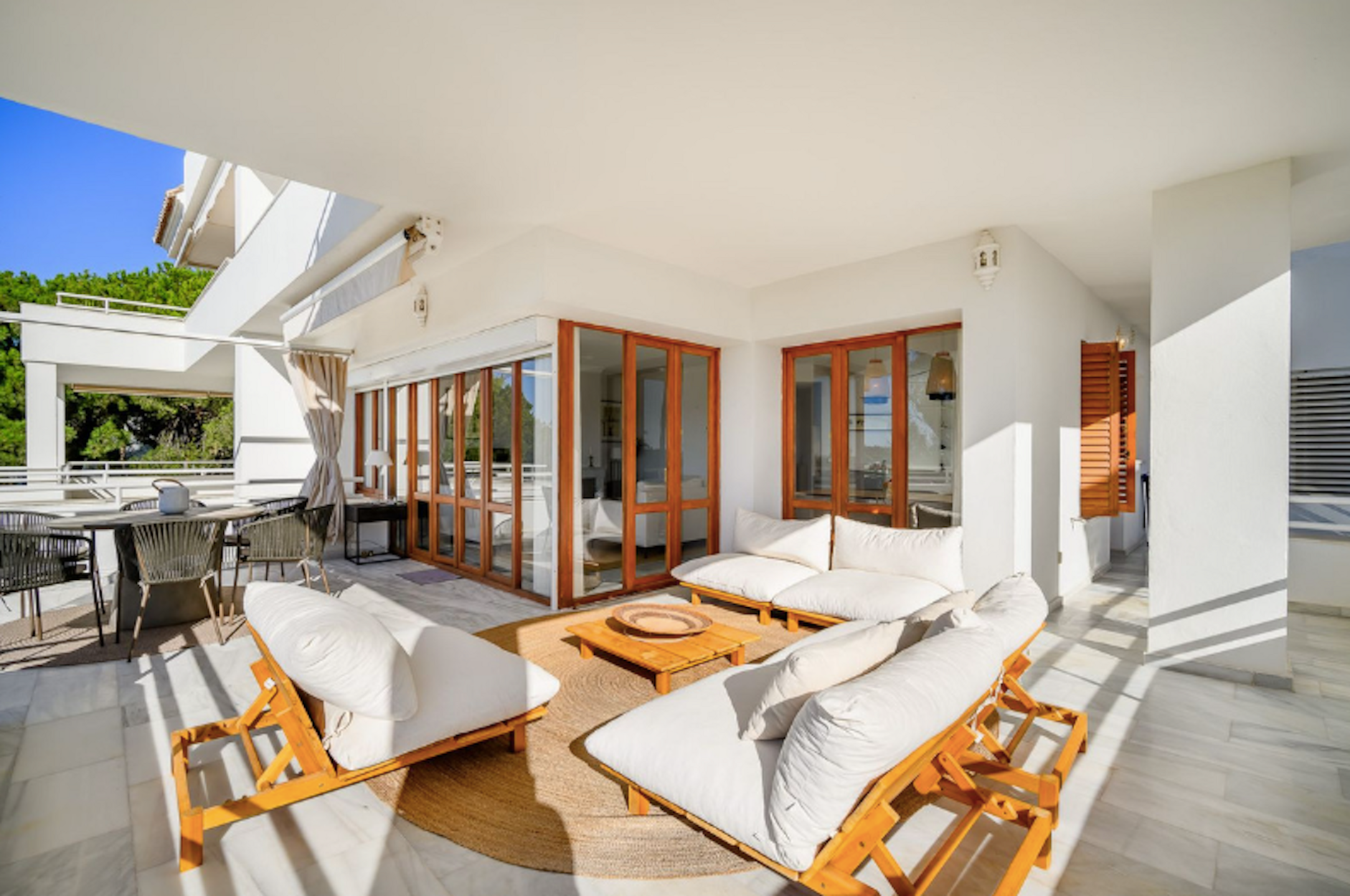 Ubicada a solo unos minutos a pie del Club de Golf Los Naranjos, esta urbanización ofrece excelente seguridad 24/7 y fácil acceso a los principales servicios, como supermercados y colegios. La urbanización cuenta con dos piscinas comunitarias, garajes y jardines bien cuidados. Perfecta para quienes disfrutan del sol al atardecer mientras observan a los golfistas. Esta propiedad ofrece dos terrazas: una con orientación norte y muy privada, y la principal, con acceso desde el salón, con orientación oeste. La segunda terraza tiene vistas al mar. Los dos dormitorios del apartamento tienen baño en suite y un aseo de invitados. Existe la posibilidad de construir un tercer dormitorio si es necesario.