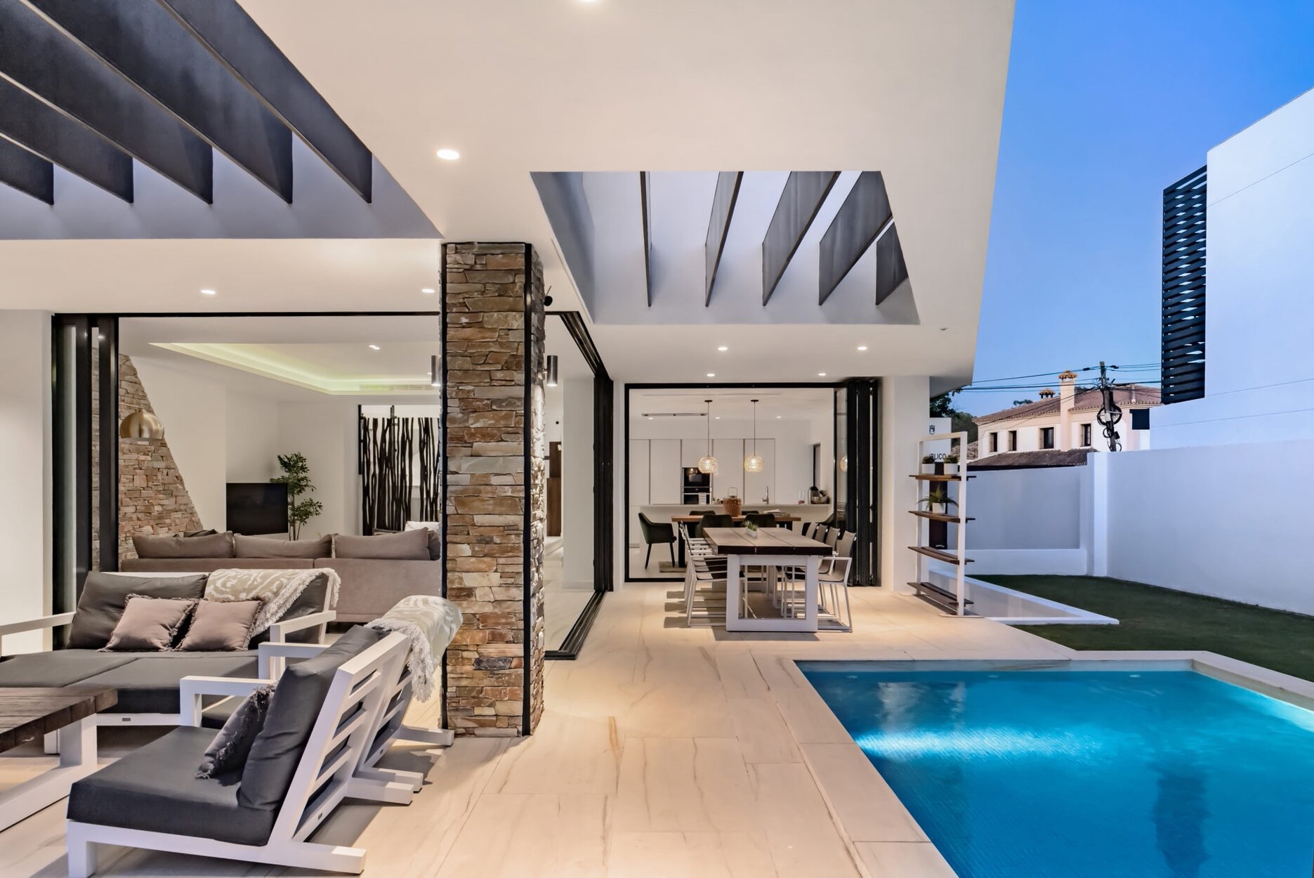 The beach and Puerto Banus are both within easy driving distance of this San Pedro property. Totally new. All of this contemporary house’s equipment and facilities are of the highest quality.