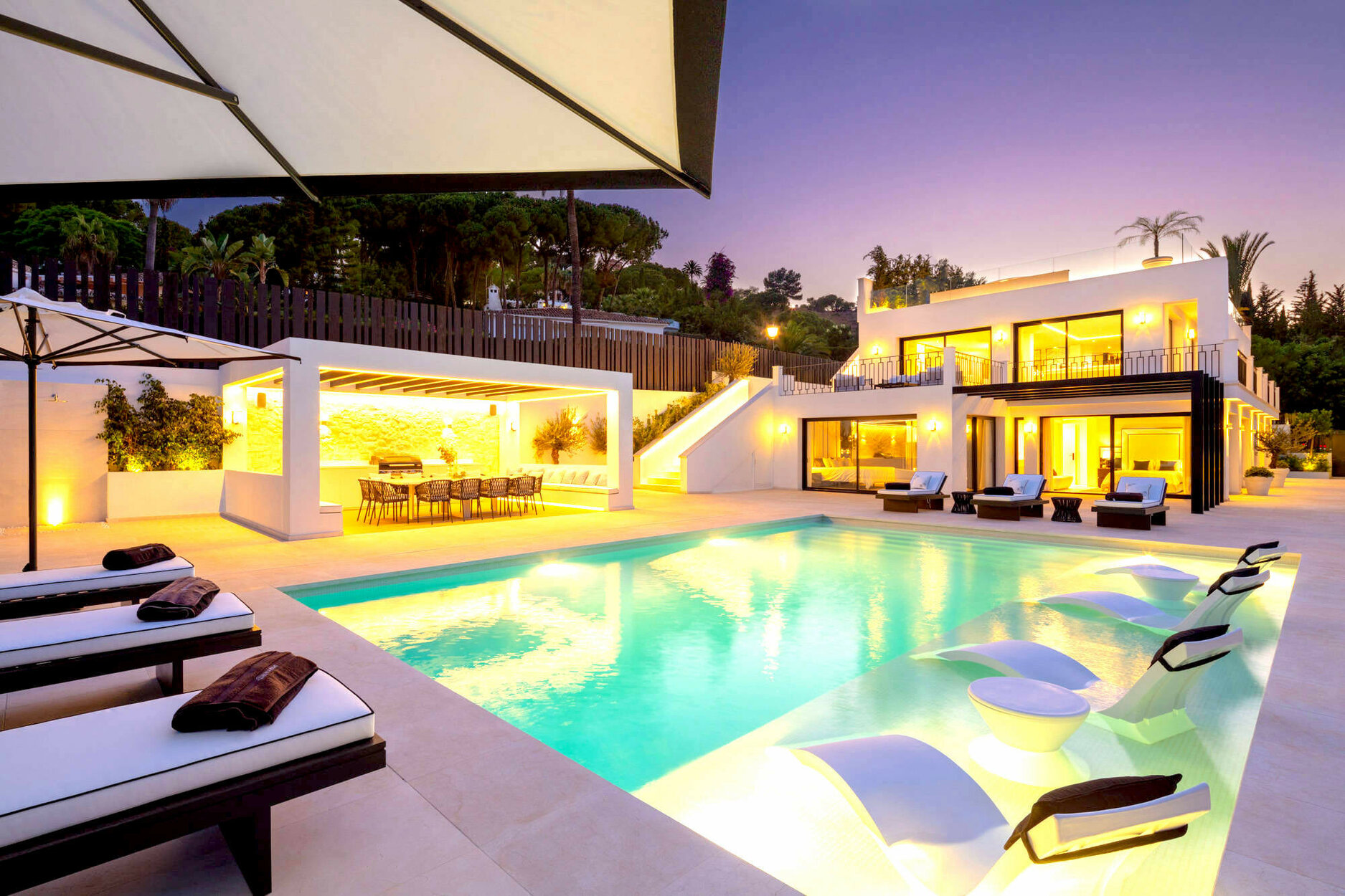 Set on a large plot of more than 1,218 m2, this residence is the perfect luxury retreat in Marbella. The villa boasts stunning exterior spaces to ensure the highest quality outdoor living. Inside, contemporary open-plan spaces welcome you into this chic luxury home.