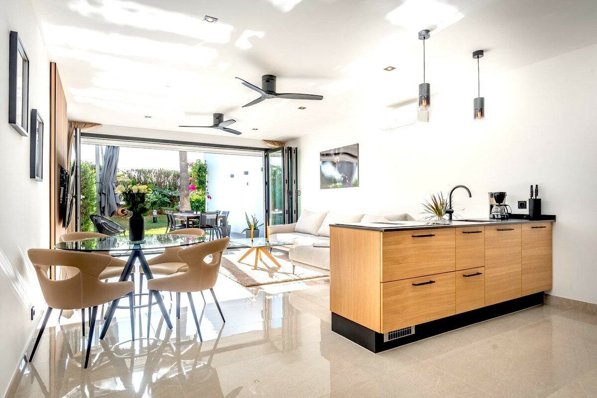 Fully renovated to the highest standard, this exquisite property is a gem in the prestigious area of Aloha. Perfectly positioned front line to the golf course, this home boasts an open-plan living space with bi folding patio doors that seamlessly connect the interior to the terrace and garden, creating an inviting and airy ambiance.