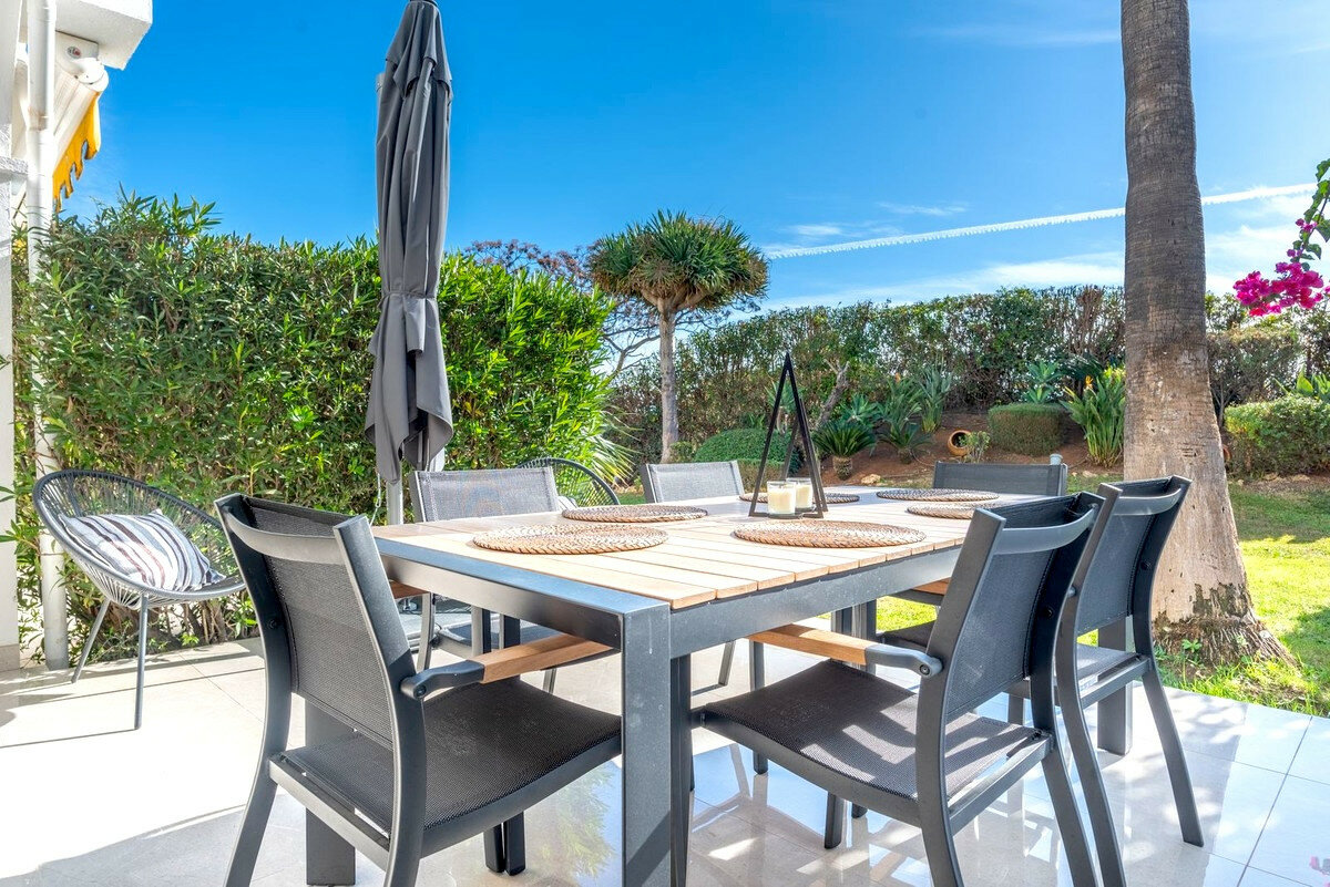 The property offers three double bedrooms, including a convenient ground-floor bedroom. Additionally, there is a fourth room that can be used as an office or storage space. The first floor features two terraces, each with breathtaking views - one overlooking the golf course towards the sparkling Mediterranean sea, and the other offering serene views of the iconic La Concha mountain.