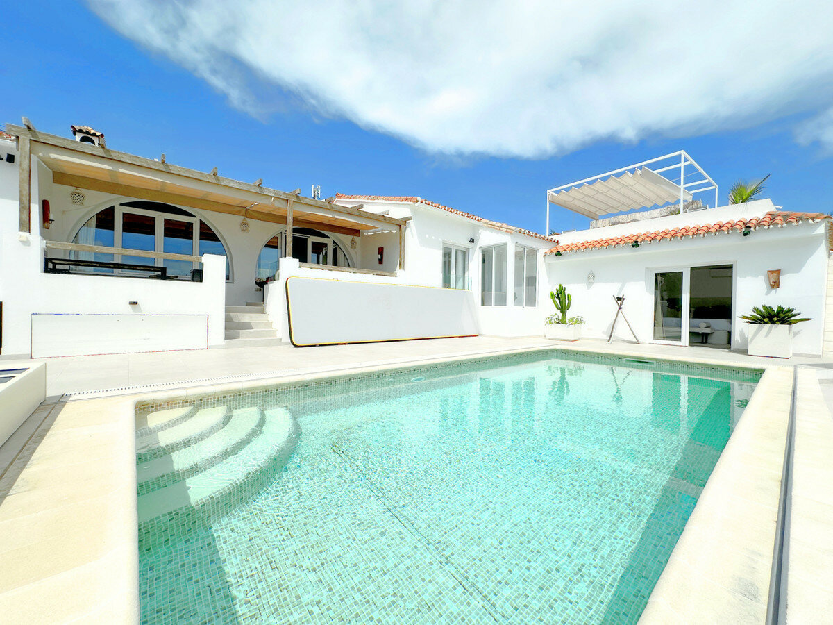 Just 300 meters from the beach! Beautiful villa with a privileged location in Estepona West. This property offers the perfect balance between tranquillity and access to a wide range of amenities and entertainment. Situated in an urbanization only 3 minutes drive to supermarkets, shops and the new hospital, Malaga airport 50 km and Gibraltar 30 km. This property has been completely renovated in a modern and contemporary style and is distributed over one floor for maximum comfort. South facing, it enjoys exceptional brightness and panoramic sea views from every corner of the house. Inside, you will find 5 spacious bedrooms designed with elegance and comfort. The open plan living room and dining room merge seamlessly with the kitchen, creating an ideal space for entertaining and family life. But the most amazing thing about this property are its wonderful terrace, solarium and private swimming pool, set on a 700m2 plot, where you can relax and enjoy the sunny climate of the area while taking in the spectacular views. The property also offers great privacy. With plenty of rental potential and its ideal location, this villa is a unique opportunity for those looking for an investment or simply to enjoy luxury living in this oasis. Viewing is highly recommended!