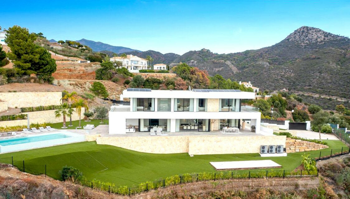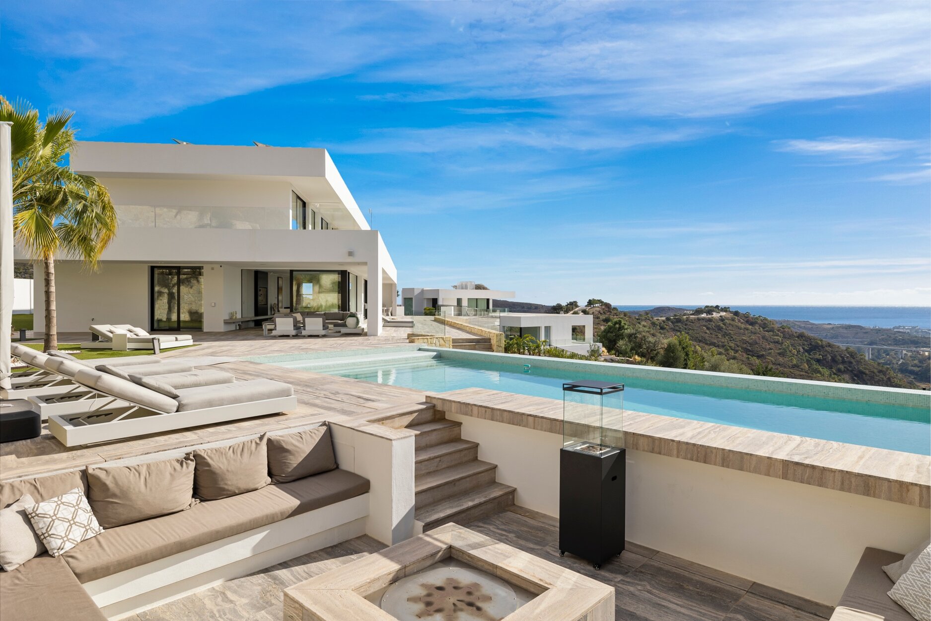 A unique contemporaty villa, built to the highest standards. South to west facing with impressive panoramic sea and mountain views.