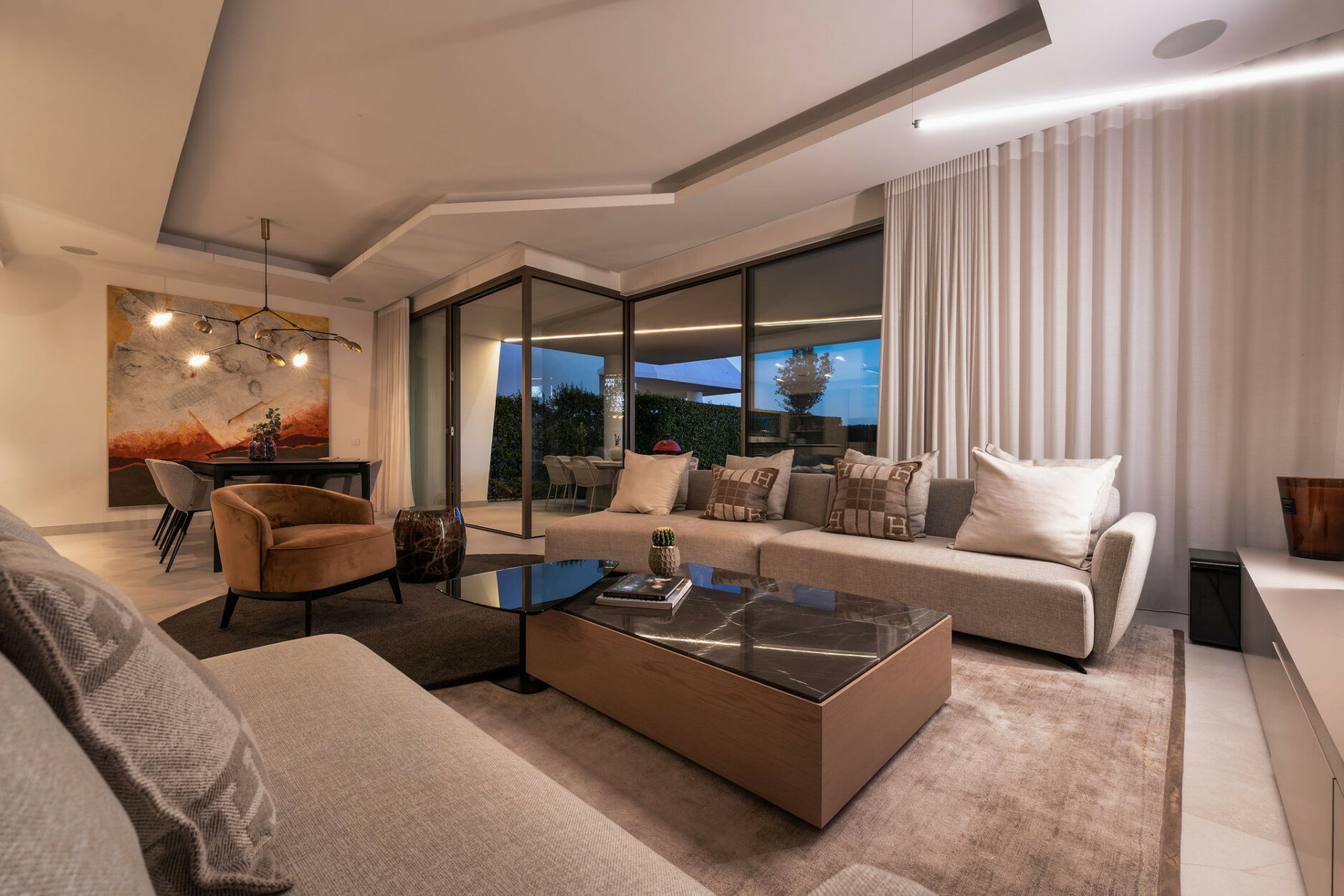 Located in the heart of Nueva Andalucía’s prestigious Golf Valley, Celeste is an exclusive gated community offering privacy, elegance, and contemporary design. Surrounded by world-class golf courses, international schools, fine dining, boutique shops, and the stunning beaches of the Costa del Sol, this villa combines convenience with tranquility. The architecture features clean lines and premium finishes, with spacious open-plan living areas that flow seamlessly onto a private terrace and garden, capturing breathtaking southwest views of the Mediterranean, Gibraltar, and Africa. The villa offers luxurious bedroom suites, a rooftop terrace with panoramic vistas and a private pool, and a lower level designed for entertainment, including a cinema, bar, gym, and direct garage access. This property perfectly blends modern sophistication, comfort, and the ultimate Mediterranean lifestyle.