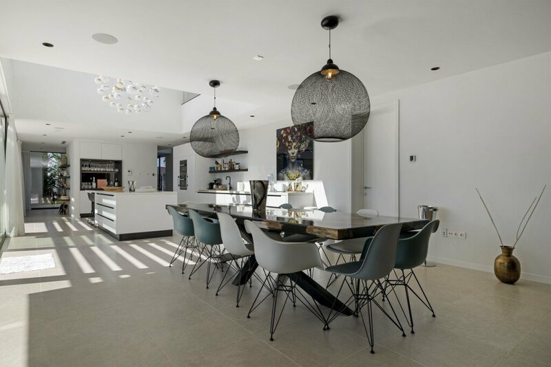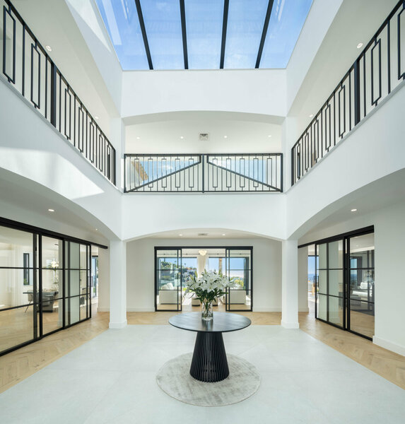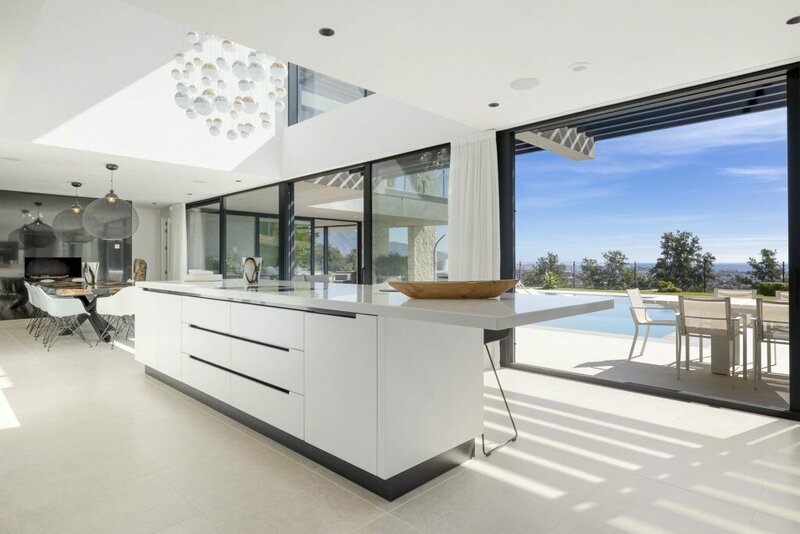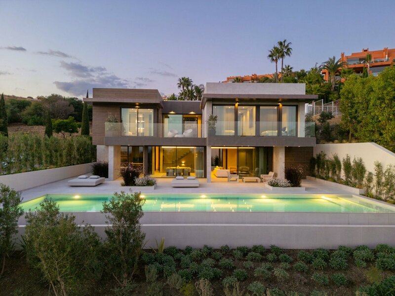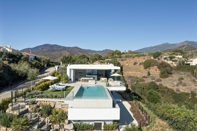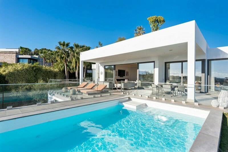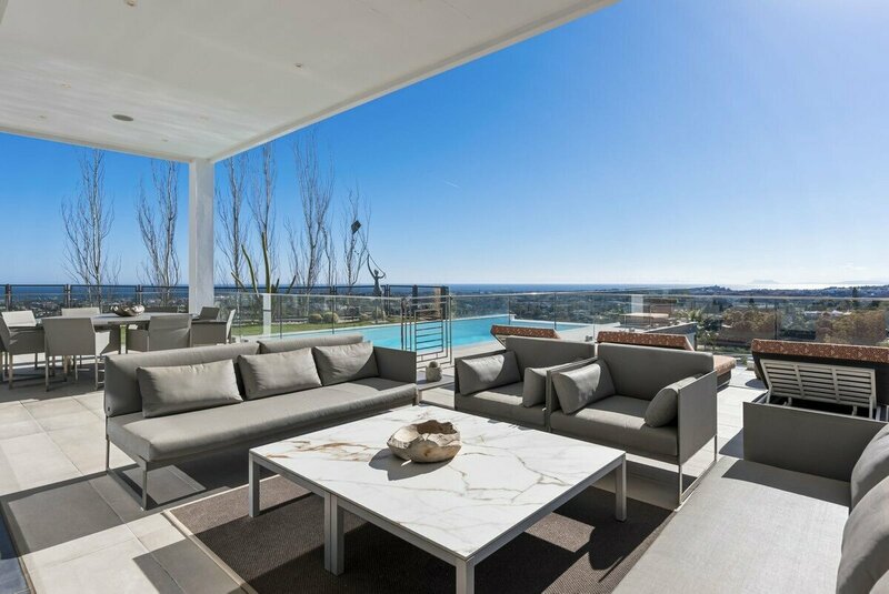 This exceptional contemporary villa offers breathtaking panoramic views of the Mediterranean Sea, La Concha mountain, a…