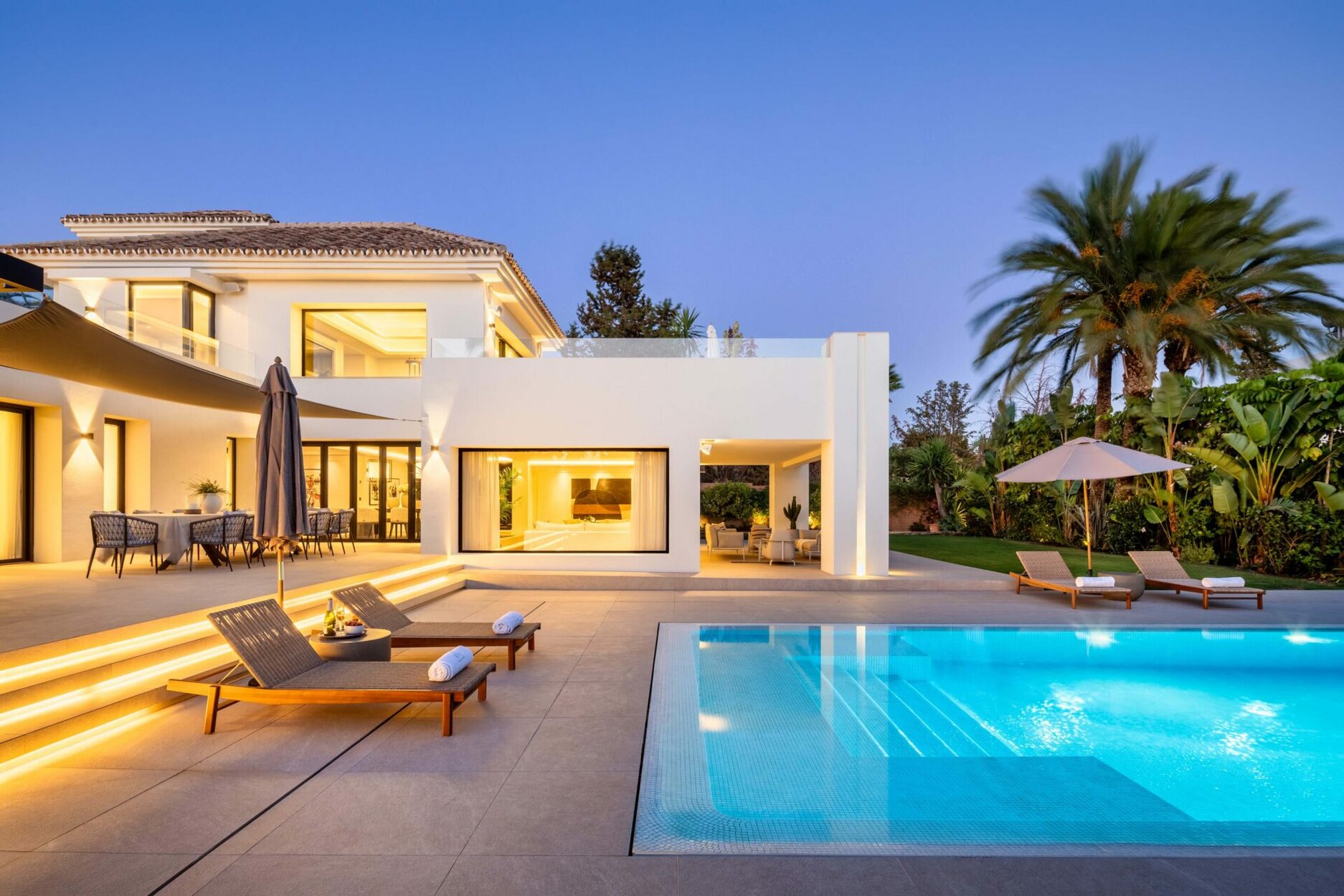 This modern villa is set in the heart of Nueva Andalucía, one of Marbella’s most exclusive residential areas. Designed by acclaimed architect Francisco Martinez Galván, it blends contemporary Mediterranean style with smart functionality and superior build quality. The property enjoys serene sea views, landscaped gardens, and a custom-designed saltwater pool, creating a private and sophisticated retreat.